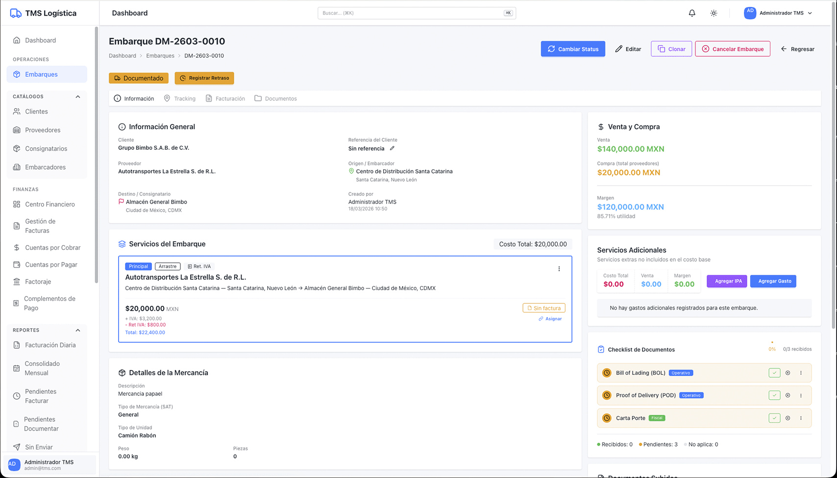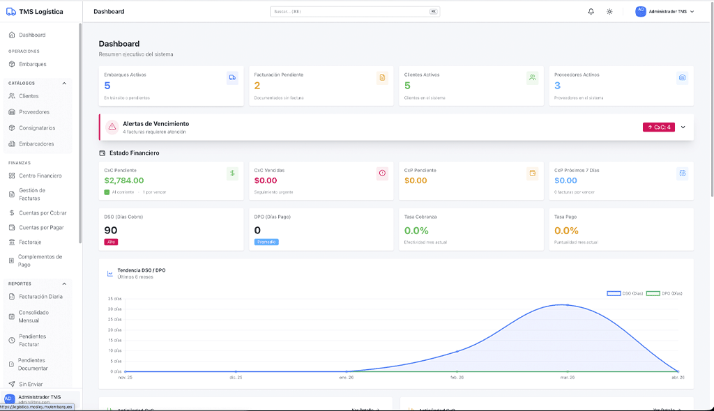 Empresa de transporte que operaba con hojas de cálculo y sistemas desconectados. Desarrollamos una plataforma de gestion de logistica completa con Laravel 11 y Livewire 3 que centraliza embarques, automatiza la facturación CFDI 4.0 con Carta Porte 3.1 y controla cuentas por cobrar y pagar. Más de 50,000 líneas de código, 80+ componentes Livewire y 25+ tablas PostgreSQL.
