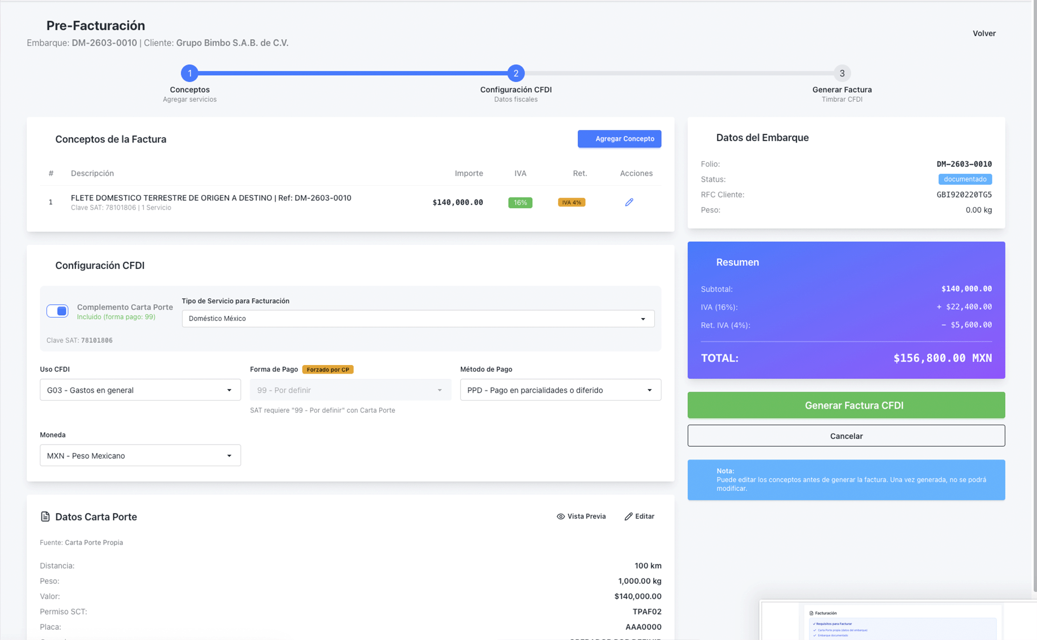 - Rol: Web App, Laravel 11, CFDI 4.0, Carta Porte 3.1