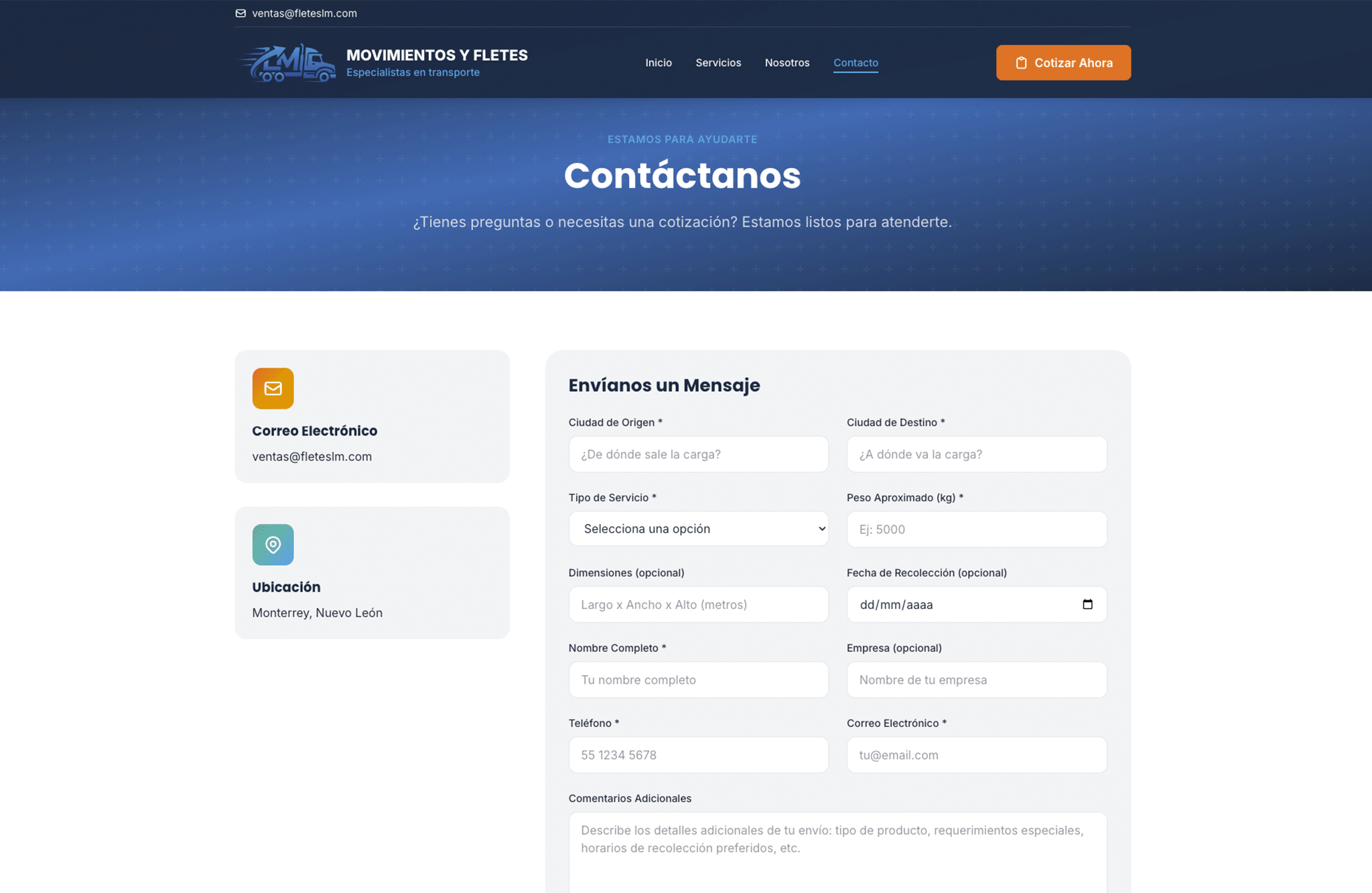 - Sitio: fleteslm.com